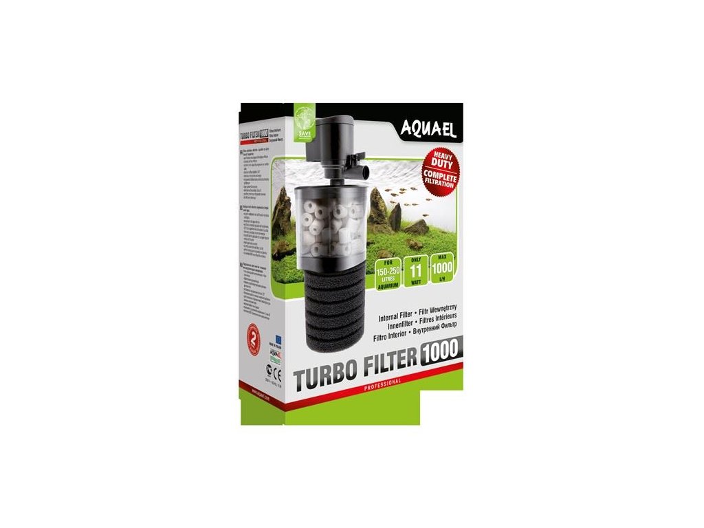 Filtr je určen pro čištění a provzdušňování vody v akváriích o objemu 150–200l. . Poskytuje dvojité mechanické a biologické filtrování, je extrémně tichý a energeticky úsporný. Všechny modely Turbo filtrů jsou vybaveny speciálními tlumícími přísavkami, které absorbují případné vibrace přenášené na sklo a zajišťují tak extrémně tichý chod. Speciální konstrukce TURBO FILTERU umožňuje rozšíření a plnění filtrační nádrže libovolným filtračním médiem v závislosti na potřebách. TURBO FILTER lze nainstalovat a nakonfigurovat třemi různými způsoby: pouze houbou, pouze nádobou a nádobou plus houbou.Technická data: