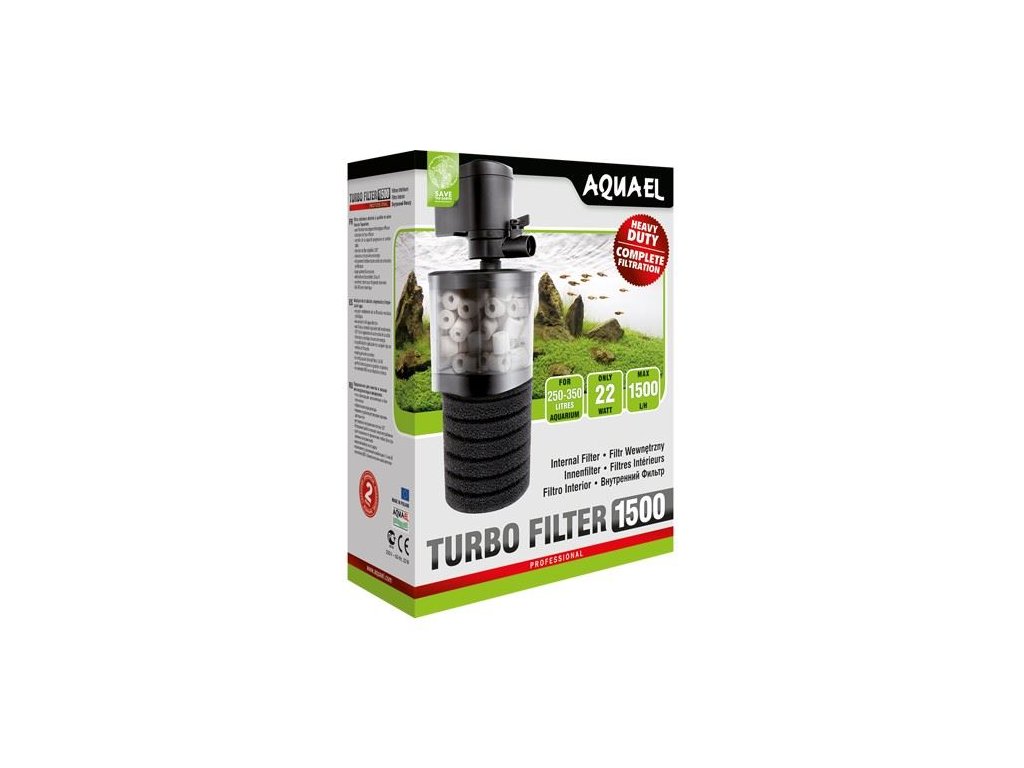 Filtr TURBO FILTER je určen k čištění a provzdušňování akvarijní vody. Jeho předností je velmi efektivní a tichý provoz, energetická účinnost a schopnost rozšiřovat a používat jakákoli filtrační média.Filtr TURBO FILTER 1500 se doporučuje pro nádrže s maximální kapacitou 250 - 350L