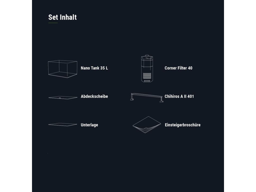Tento set je ideální volbou pro začínající i pokročilé aquascapery, kteří chtějí vytvořit přirozený podvodní svět ve svém domově. Díky vysoké kvalitě zpracování, zaobleným rohům a modernímu designu se dokonale hodí do jakéhokoliv interiéru. Kombinace kvalitního skla, výkonného filtru a pokročilého LED osvětlení zajišťuje optimální podmínky pro růst rostlin, chov krevet a chování drobných ryb.