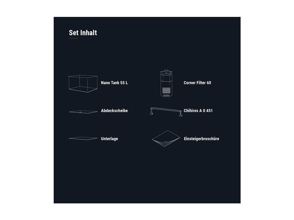 Tento set je ideální volbou pro začínající i pokročilé aquascapery, kteří chtějí vytvořit přirozený podvodní svět ve svém domově. Díky vysoké kvalitě zpracování, zaobleným rohům a modernímu designu se dokonale hodí do jakéhokoliv interiéru. Kombinace kvalitního skla, výkonného filtru a pokročilého LED osvětlení zajišťuje optimální podmínky pro růst rostlin, chov krevet a chování drobných ryb.