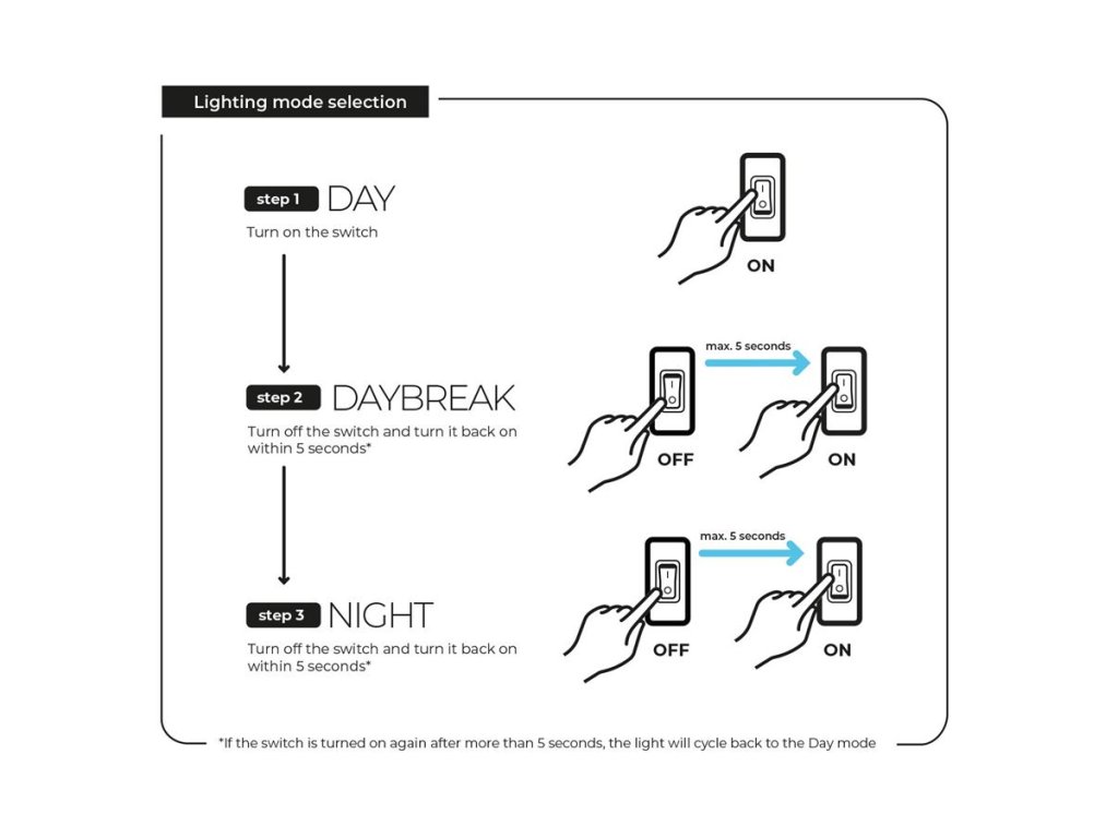 | Tři režimy osvětlení LED zářivky Leddy Tube májí tři režimy osvětlení DEN - SVÍTÁNÍ - NOC. | ![]() |