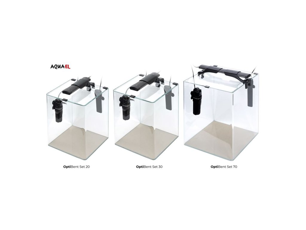 Sada OptiBent je kompletní, bohatě vybavená a designová akvarijní sada. Její zaoblené rohy vám umožní obdivovat krásu podvodního uspořádání z každého úhlu pohledu a použití opti skla zvyšuje průhlednost nádrže. To vytváří jedinečný vizuální efekt a vy si můžete naplno užívat sledování výsledků své vášně.Objem akvária [l]: 68