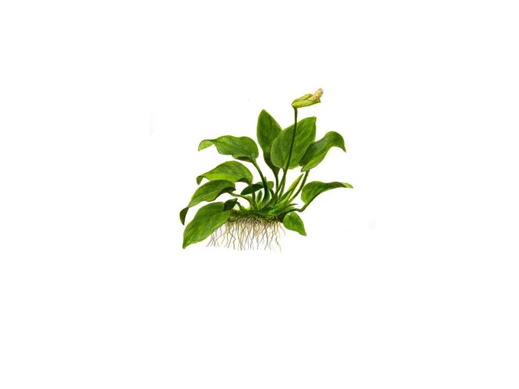 Anubias barteri var. nana je malá, atraktivní rostlina, které se daří ve všech podmínkách. Rostlinka pochází z Kamerunu a dosáhne výšky 5-10 cm. Hlavní stonek bude 10-15 cm dlouhý nebo více. Pomalu roste a listy přežívají několik let. Po nějaké době rostlina vytvoří velmi atraktivní trs listů.Žádaného růstu u této rostliny dosáhnete pokud rostlinu zasadíte popřípadě přivážete ke kořeni nebo kameni. Tuto rostlinku by jste nikdy neměli sázet do substrátu. Pokud by jste tomu tak udělali a zakryli hlavní stonek, tak by rostlina postupně strádala a uhynula.