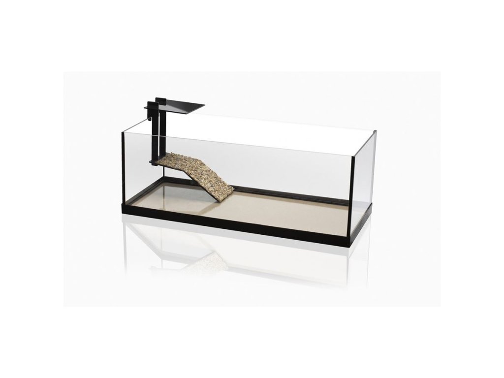 | Ideální domov pro vaše zvířata Vybavení terária AquaTerrarium obsahuje mnoho funkcí, které splňují potřeby budoucích obyvatel terária. Jednou z nejdůležitějších je protiskluzová plošina z přírodního štěrku, která vašim mazlíčkům umožní bezpečný výstup. Na nádrži je také stříška, která chrání zvířata před náhodným vypadnutím. |