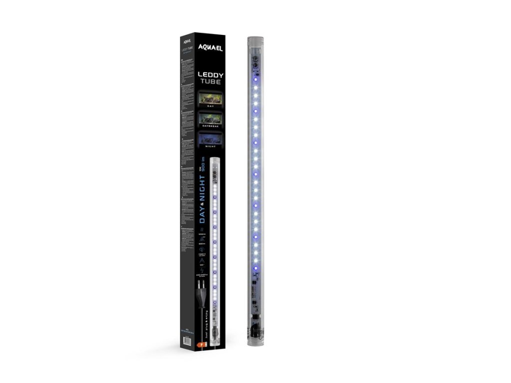 LEDDY TUBE 10W SUNNY D&N je určen k osvětlení sladkovodních akvárií. Obsahuje pečlivě vybrané LED diody, které zajišťují dokonalé osvětlení akvária a zaručují jeho obyvatelům vynikající životní podmínky. Lze jej instalovat do krytů a lamp Aquael. Díky použití přídavných adaptérů T5 / T8 jej lze nainstalovat také do jakéhokoli krytu nebo lampy určené pro tradiční akvarijní zářivky. Příslušenství DUBLED věšák umožňuje přidat k lampě nebo krytu přídavný modul a zvýšit tak osvětlení nádrže.Modul LEDDY TUBE 10W SUNNY D&N je vybaven funkcí Day & Night. Pracuje ve třech provozních režimech: DEN / DAYBREAK / NOC. DAY je základní a nejvýkonnější světlo pro osvětlení akvária během dne. DAYBREAK je snížený výkon denního světla na 50 % plus modré světlo. Funguje to dobře jako první režim po noci a při krmení ryb - zvláště pokud máte nervózní obsazení. NIGHT je modrá záře, která umožňuje jedinečné pozorování akvária po setmění, včetně ryb a zvířat s nočním životním stylem. Day & Night osvětlení krásně zobrazí uspořádání v akváriu ve dne i v noci a zútulní i interiér místnosti, ve které je nádrž umístěna. Provozní režim DEN / DAYBREAK / NOC se změní po vypnutí a zapnutí modulu spínačem do 5 sekund. Nejlepší je tento proces automatizovat pomocí moderního ovladače akvárií SOCKET DUO.