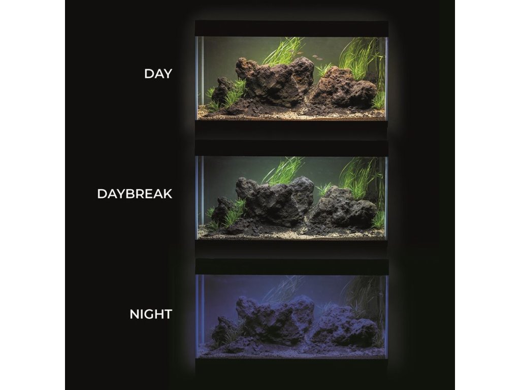 LEDDY TUBE 17W SUNNY D&N je určen k osvětlení sladkovodních akvárií. Obsahuje pečlivě vybrané LED diody, které zajišťují dokonalé osvětlení akvária a zaručují jeho obyvatelům vynikající životní podmínky. Lze jej instalovat do krytů a lamp Aquael. Díky použití přídavných adaptérů T5 / T8 jej lze nainstalovat také do jakéhokoli krytu nebo lampy určené pro tradiční akvarijní zářivky. Příslušenství DUBLED věšák umožňuje přidat k lampě nebo krytu přídavný modul a zvýšit tak osvětlení nádrže.Modul LEDDY TUBE 17W SUNNY D&N je vybaven funkcí Day & Night. Pracuje ve třech provozních režimech: DEN / DAYBREAK / NOC. DAY je základní a nejvýkonnější světlo pro osvětlení akvária během dne. DAYBREAK je snížený výkon denního světla na 50 % plus modré světlo. Funguje to dobře jako první režim po noci a při krmení ryb - zvláště pokud máte nervózní obsazení. NIGHT je modrá záře, která umožňuje jedinečné pozorování akvária po setmění, včetně ryb a zvířat s nočním životním stylem. Day & Night osvětlení krásně zobrazí uspořádání v akváriu ve dne i v noci a zútulní i interiér místnosti, ve které je nádrž umístěna. Provozní režim DEN / DAYBREAK / NOC se změní po vypnutí a zapnutí modulu spínačem do 5 sekund. Nejlepší je tento proces automatizovat pomocí moderního ovladače akvárií SOCKET DUO.