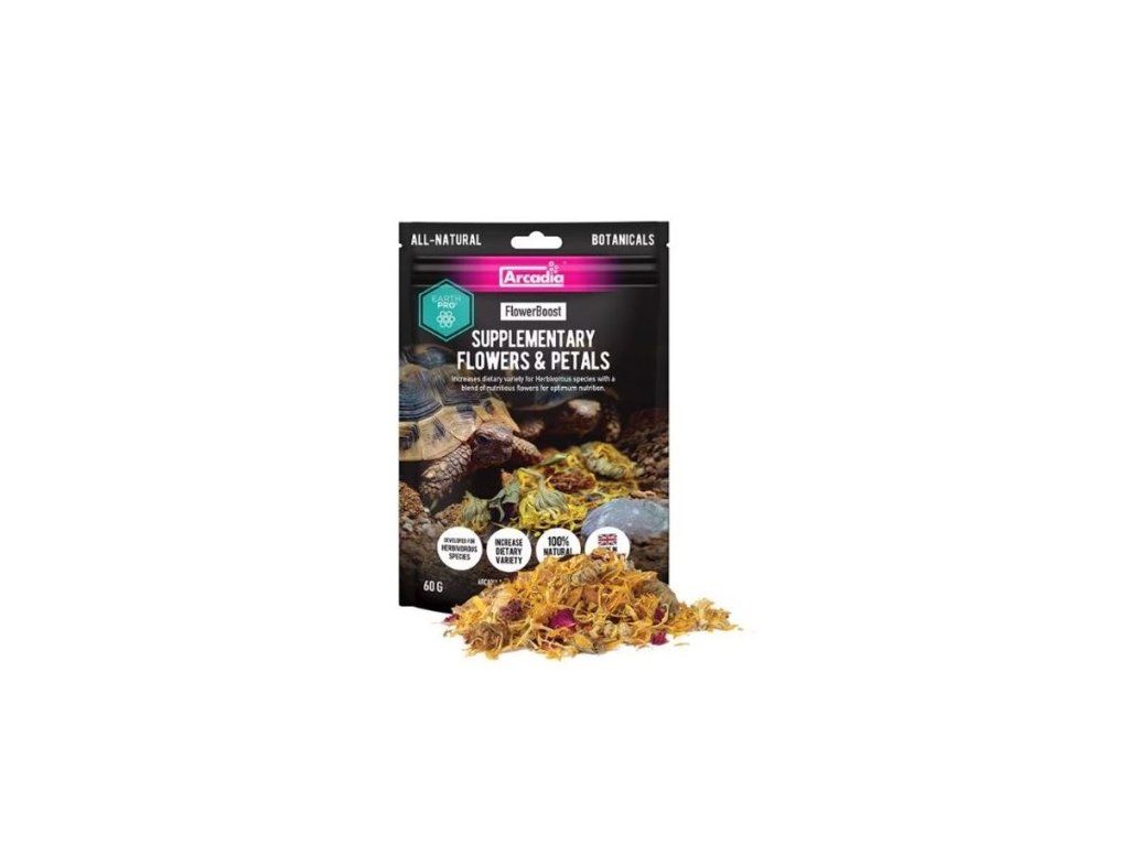 FlowerBoost je zcela přírodní, vhodný pro všechny býložravé a všežravé plazi. Vítaný doplněk potravy agam vousatých, suchozemských želv, trnorepů a mnoha dalších druhů.