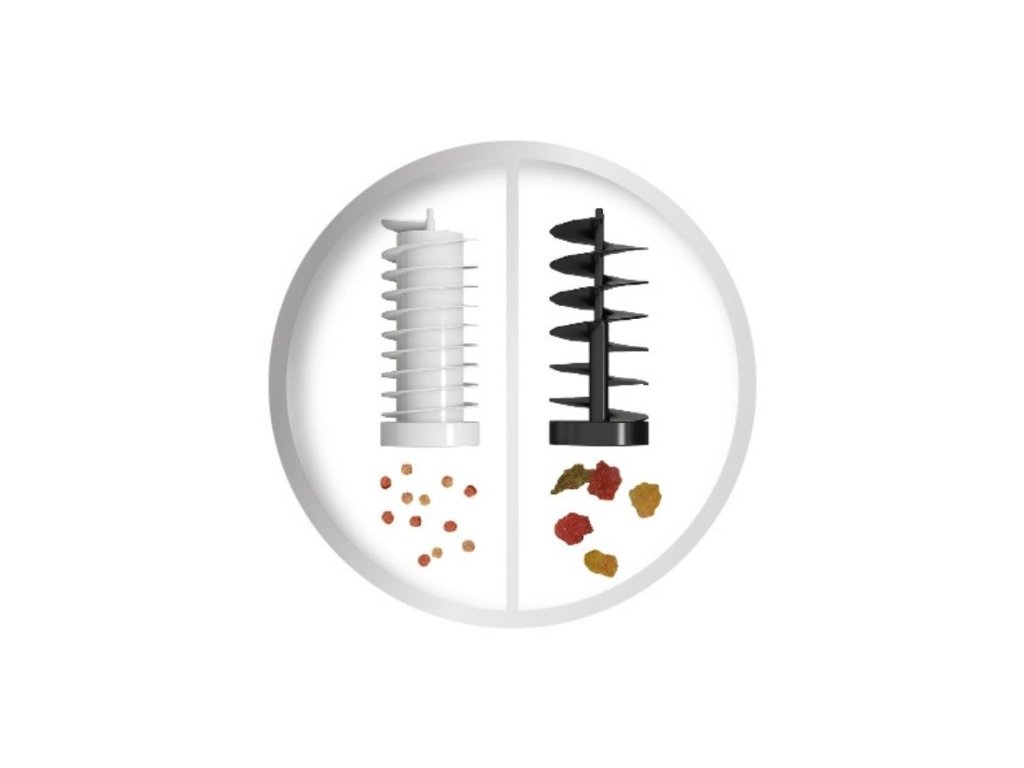 ![]() | Pro všechny typy krmiv. Ideální pro granulované a vločkové krmivo díky dvěma přiloženým šnekovým šroubům. |
