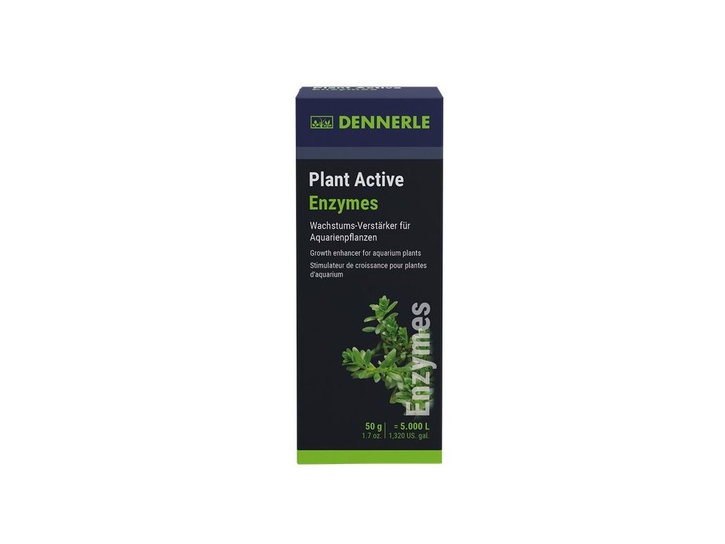 Dalo by se předpokládat, že rostlina poroste na maximum, když bude mít dostatečné množství světla, CO2 a živin. Ale není tomu tak. Praxe ukazuje, že existují i další faktory, které mají příznivý vliv na růst. Dennerle brzy provedl rozsáhlé studie o těchto sekundárních růstových faktorech. Odtud pocházejí rostlinné aktivní enzymy. Rostlinné aktivní enzymyfunguje vícekrát. Přírodní rostlinné enzymy stimulující růst stimulují buněčné dělení. Enzymy jsou biokatalyzátory a mají zásadní význam pro metabolismus rostlin. Například přeměňují rezervní látky na rozpustné látky, které pomáhají rostlině růst. To podporuje tvorbu nových listů a růst výhonků. Plant Active Enzymes je proto zvláště vhodný pro aquascaper, zejména po prořezávání pro urychlení nového růstu. Zároveň vybrané, přírodní aktivní látky podporují stavební a energetický metabolismus. Mohou být absorbovány a metabolizovány rostlinou přímo prostřednictvím listů. To posiluje rostliny a může zvýšit jejich obranyschopnost, např. proti růstu řas na listech. Plant Active Enzymes má také pozitivní vliv na redoxní rovnováhu v akváriu. Oxidací dochází k oxidaci řady živin, a tím se stávají pro rostliny neúčinnými (např. železo a mangan). Redukce převádí tyto živiny zpět do formy, kterou mohou rostliny absorbovat. Rostlinné aktivní enzymy podporují tyto redukční reakce. Rostlinné živiny, které se staly neúčinnými, jsou tak v akváriu remobilizovány a opět zpřístupněny rostlinám. Růstové prostředí je optimalizováno. Zvláště pozitivní: Rostlinné aktivní enzymy udržitelnou podporou růstu rostlin také vytvářejí nepříznivé podmínky pro růst řas. Stávající řasy jsou zpomaleny, růst nových řas je výrazně omezen.