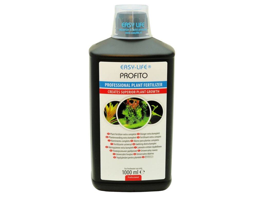 PROFITO je kompletní hnojivo pro akvarijní rostliny. Je vysoce koncentrované a díky svému složení zajišťuje kompletní výživu rostlin ve Vašem akváriu. Obsahuje železo, draslík, hořčík, mangan, kobalt, molybden, měď, jód, zinek a phytohormony, potřebné pro zdravý růst rostlin.Proč hnojit hnojivem Easy-Life Profito?