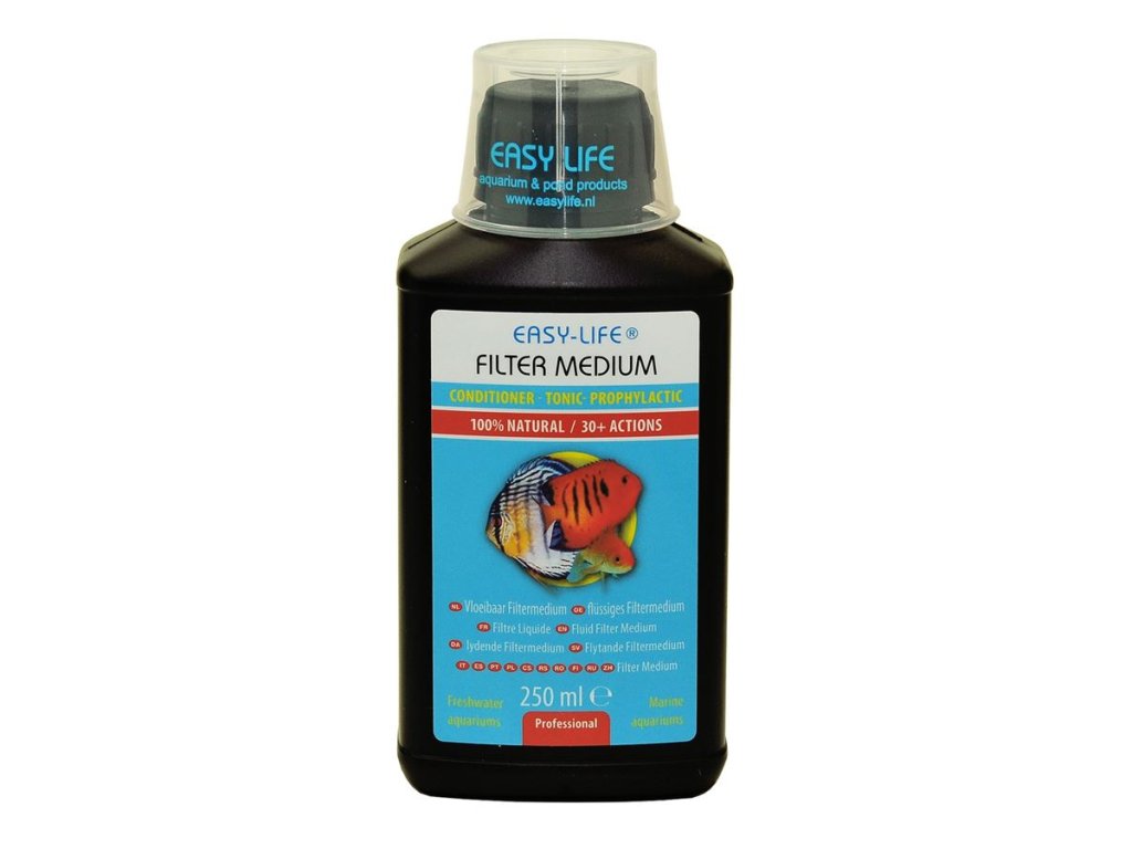 Easy-Life Filter Medium je jedinečný 100% přírodní přípravek, který čistí vodu, podporuje růst rostlin, zvyšuje vitalitu ryb a eliminuje stres i škodlivé látky. Funguje ve sladkovodních i mořských akváriích, rybníčcích a je ideální při údržbě, zakládání akvária, transportu ryb i léčbě. Bez chemie, bez rizika, s maximální účinností.
