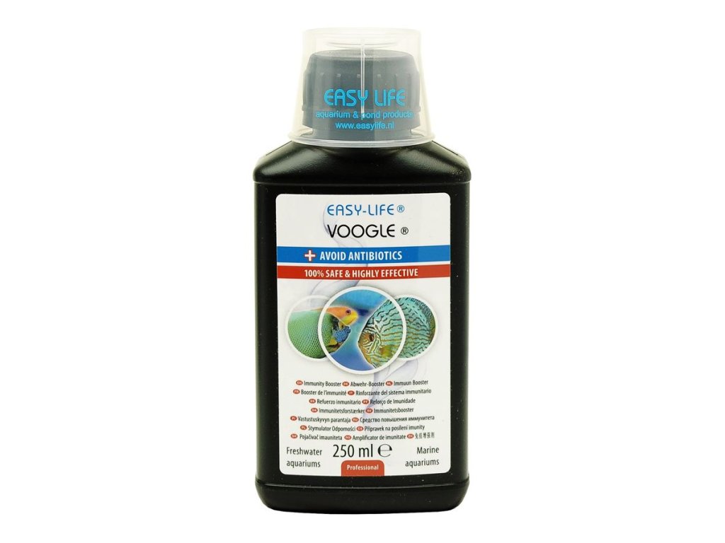 Easy-Life Voogle je inovativní a bezpečný přípravek, který podporuje přirozený imunitní systém ryb a napomáhá jejich hojení – bez použití antibiotik. Díky složení na bázi rostlinných extraktů, vitamínů a minerálů posiluje obranyschopnost, zlepšuje kondici a pomáhá rybám zvládat stresové situace, přepravu nebo karanténu. Je šetrný ke všem obyvatelům akvária, rostlinám i biofiltru a nemění parametry vody.