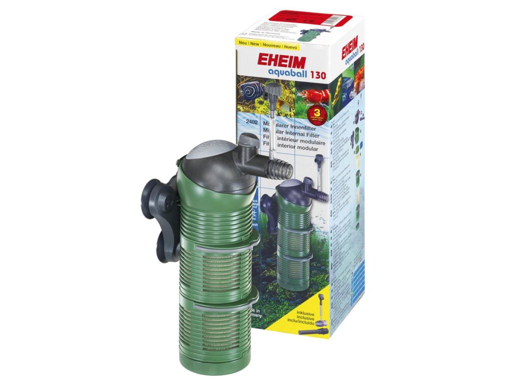 Firma EHEIM uvádí na trh revoluční řadu vnitřních filtrů Aquaball, určených pro domácí sladkovodní i mořská akvária. Kompletně nový design, možnost zvětšení, už tak velkého objemu filtračních náplní, pomocí tzv. Upgrade Kitů, Jednoduchost montáže filtru a výměny náplní, nízký příkon (5-6W) a v neposlední řadě velice tichý chod. To jsou jen některé přednosti filtru Aquaball.V balení naleznete odpovídající filtrační náplně, filtr je ale vyráběn a určen k chodu nejen s mechanickými, ale i s biologickými náplněmi. To všechno ve spojení s německou kvalitou firmy EHEIM vám dá filtr, který se svým výkonem, vlastnostmi, použitím a výdrží, řadí mezi světovou špičku vnitřních filtrů.