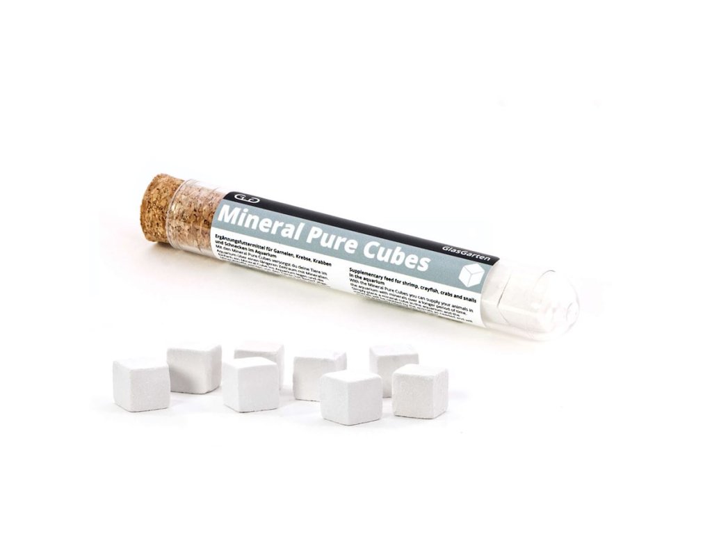 - Kostky GlasGarten Mineral Pure Cubes se skládají ze 100% přírodních ingrediencí. Minerály mají přímý vliv na GH (celkovou tvrdost) a vodivost vody v akváriu, takže GH a vodivost se mohou mírně zvýšit použitím Mineral Pure Cubes, což je při doporučeném krmení žádoucí a neškodné.