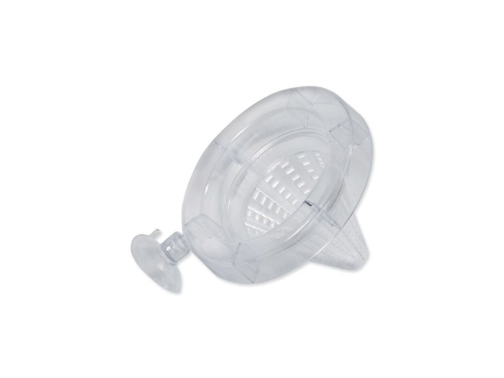 Jednoduché a praktické kulaté krmítko s přísavkou pro podávání živých nítěnek nebo drobného mraženého krmiva. Vnitřní síťka zabrání rozplývání potravy po celém akváriu a umožní rybám pohodlné a cílené krmení. Přísavka zajišťuje stabilní uchycení na sklo, vhodné i pro dočasné použití při léčbě nebo cíleném dokrmování slabších ryb.