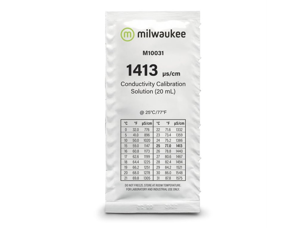Profesionální kalibrační roztok Milwaukee M10031B je určen pro přesnou kalibraci EC testerů a vodivostních sond. Laboratorní standard s hodnotou 1413 µS/cm, připravený podle NIST referenčních materiálů, zajišťuje přesné výsledky měření. Každý sáček je vzduchotěsně uzavřený, chráněný proti světlu a vzduchu, což garantuje dlouhou životnost a stabilitu roztoku.
