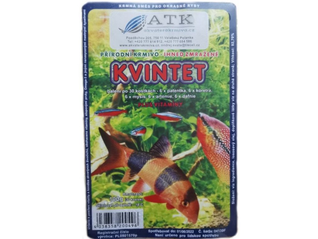 Balení po 30 kostkách - 6x červená a 6x bílá komáří larva, 6x mysis, 6x dafnie, 6x artémieSložení