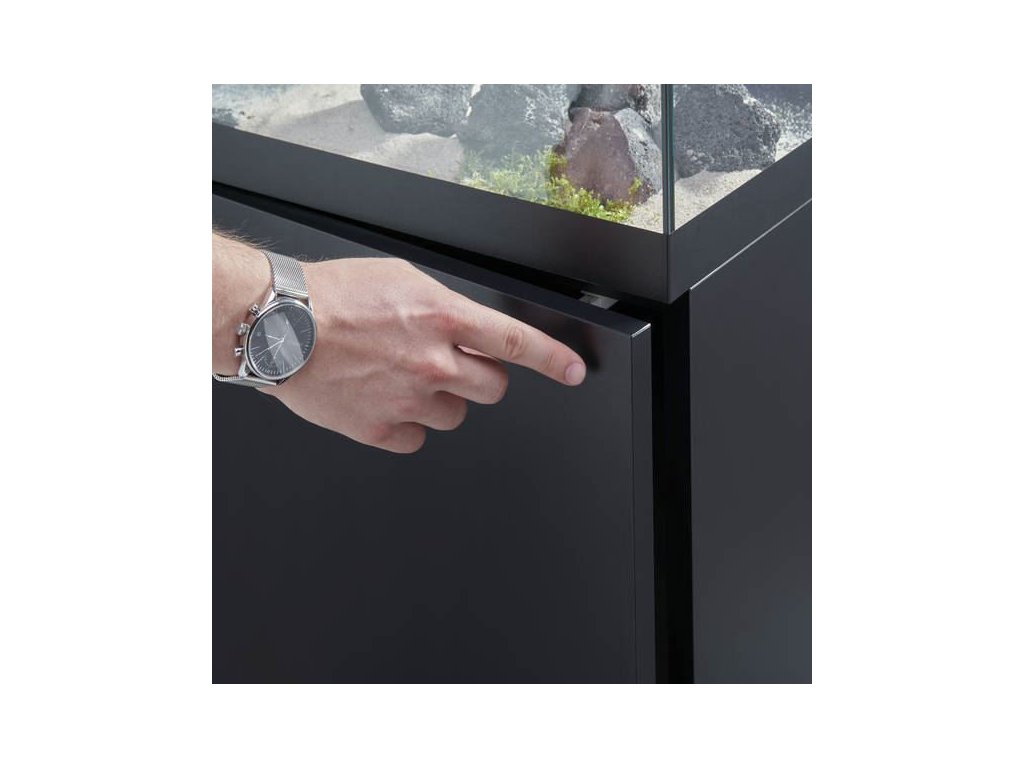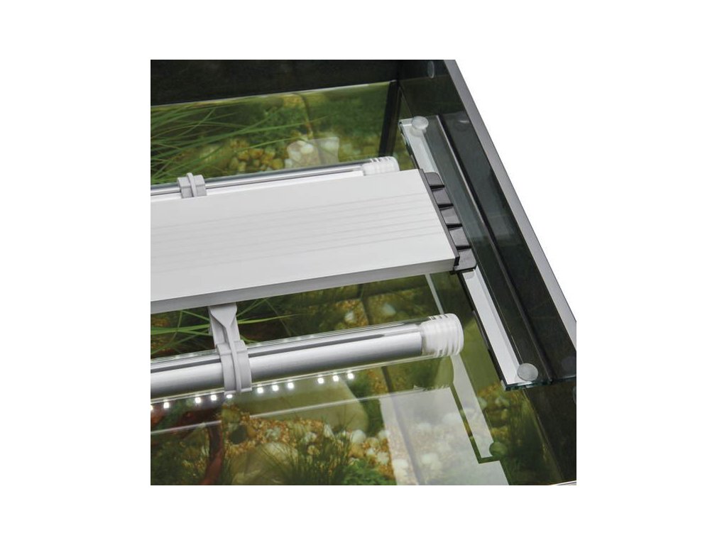 Stylové krytí: Přístup do akvária je řešený 2 matnýmy skly, které jsou umístěný v posuvných drážkách.