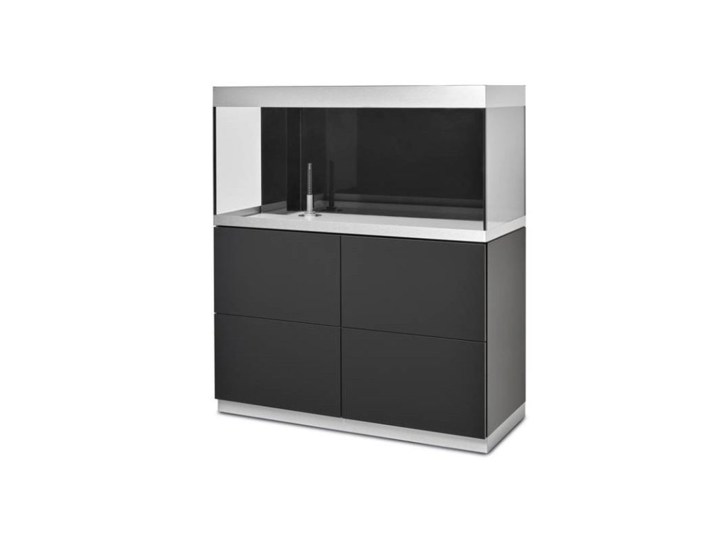 Jednoduchá instalace: Stabilní kovové nohy jsou kdykoliv snadno přístupné přes vnitřek skříňky. Zajišťují bezpečnou a optimální stabilitu akvária