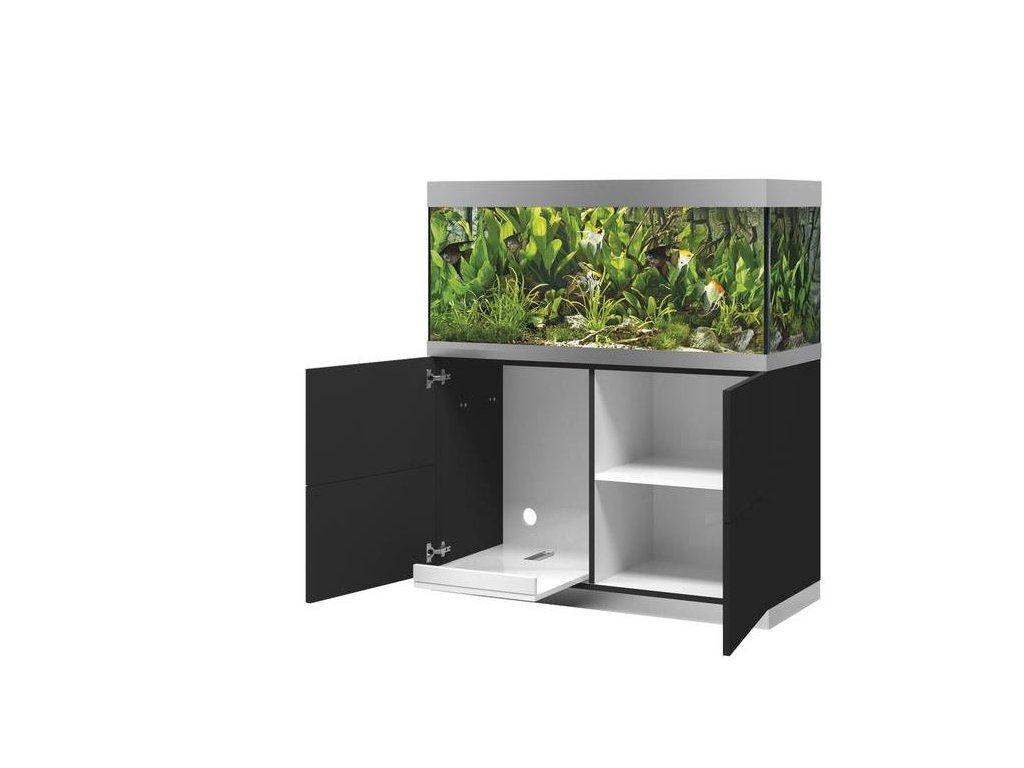 Jednoduchá instalace: Stabilní kovové nohy jsou kdykoliv snadno přístupné přes vnitřek skříňky. Zajišťují bezpečnou a optimální stabilitu akvária