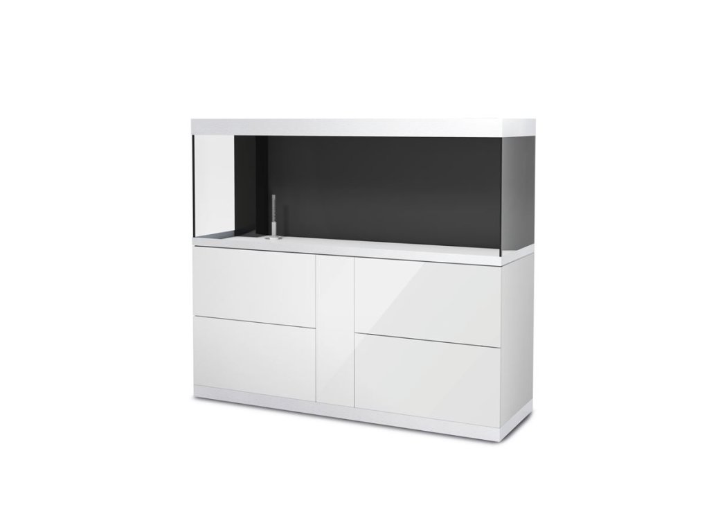 Jednoduchá instalace: Stabilní kovové nohy jsou kdykoliv snadno přístupné přes vnitřek skříňky. Zajišťují bezpečnou a optimální stabilitu akvária