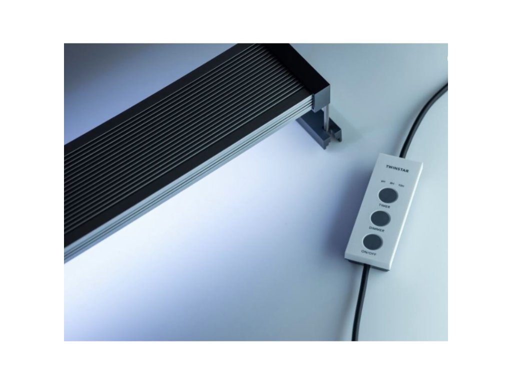 | Stmívač TWINSTAR Praktický stmívač pro nastavení základních funkcí: Intenzita: 7 stupňů intenzity Doba svícení: 6-8-10 hodin Rozednívání: Automaticky 10 min ON - 10 min OFF Tlačítko: ON/OFF Stmívač je připojený přímo k osvětlení. Vzádálenost mezi stmívačem a osvětlením je 35 cm | ![]() |
