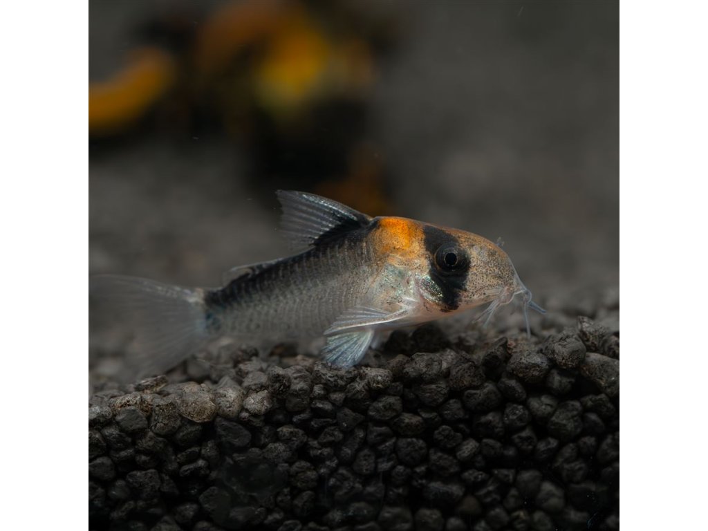 je drobná, elegantní a velmi oblíbená druhová forma pancéřníčka pocházející z oblasti Rio Negro v Brazílii. 🐟 Tato ryba je ceněna pro svůj kontrastní vzhled – světle krémové tělo, černý pás přes oči a výrazný oranžový flíček na hlavě. 👀🧡 V dospělosti dorůstá do velikosti přibližně 5–6 cm. Je velmi mírumilovná, ideální do společenských akvárií, a nejlépe se cítí ve skupině minimálně 6 jedinců. 👥