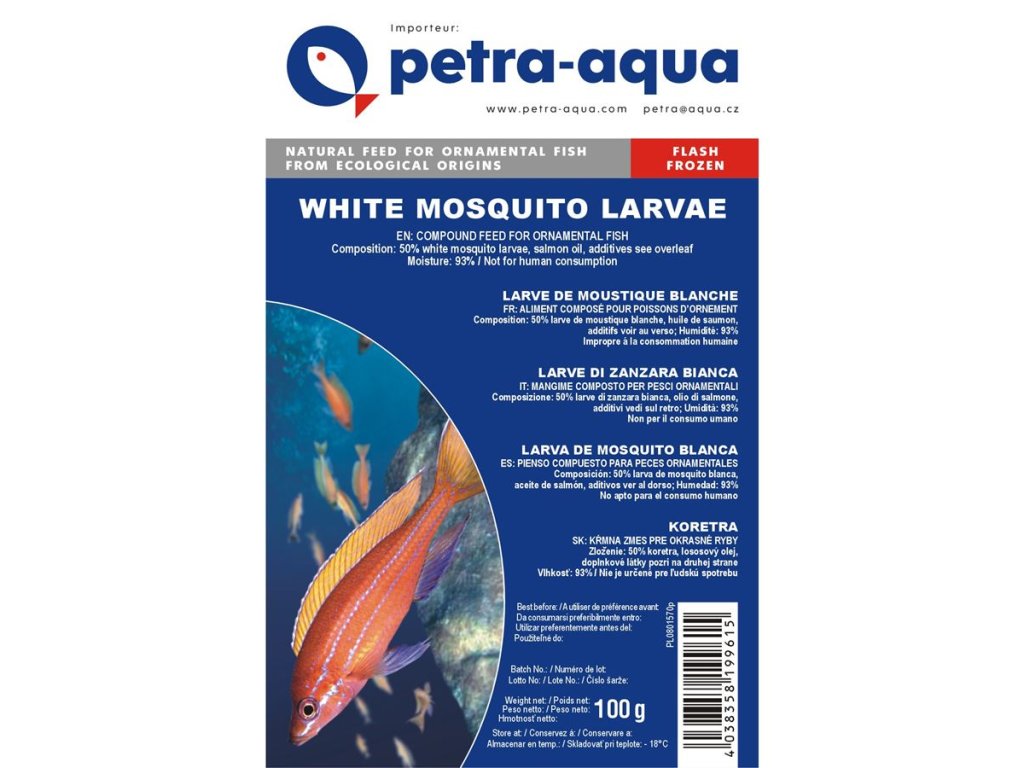 Čistá nezpracovaná bíůá patentka (larvy pakomára) pro krmení akvarijních ryb