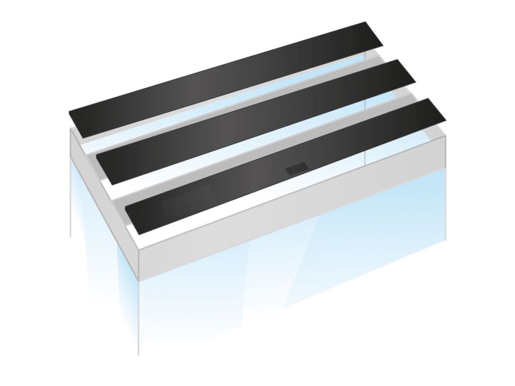 Originální plastové poklopy pro akvárium Juwel Rio 180, určené k použití se dvěma světelnými rampami. U této verze je nutné osadit alespoň jednu rampu Helialux, protože dvě rampy Multilux se vedle sebe nevejdou. Tyto kryty navíc neobsahují otvor pro krmítko ani pro odpěňovač, což je důležité při plánování jejich použití.