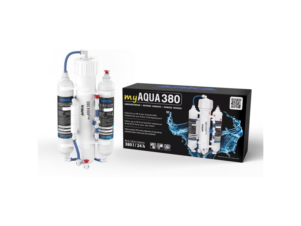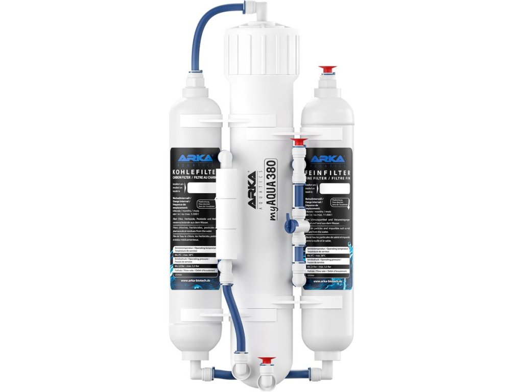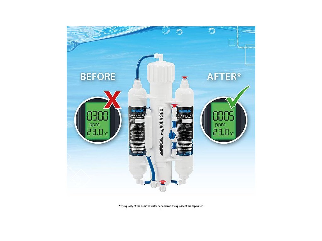 | Technické parametry: Denní výkon max. 380 l Osmická voda/zbytková voda Výdatnost cca. 1:3–4 Kapacita zadržování soli 98 % – 99 % Membrána: 100 GPD Rozměry: Výška: 350 mm Šířka: 190 mm Hloubka: 100 mm | ![]() |