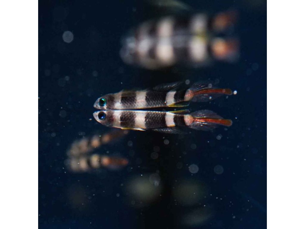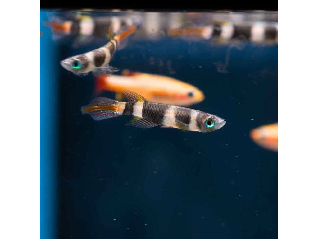 je klidná a mírumilovná sladkovodní ryba pocházející z Afriky. Tento drobný halančík je oblíbený mezi akvaristy díky svému atraktivnímu pruhovanému zbarvení a výrazné ocasní ploutvi s modročerveným lemem. Dorůstá se velikosti 3-4 cm, což z něj činí ideálního obyvatele menších akvárií. Je společenský a je vhodné ho chovat v menší skupině alespoň 6 jedinců. Je to nenáročná, ale živá ryba, vhodná pro začátečníky i zkušené chovatele.