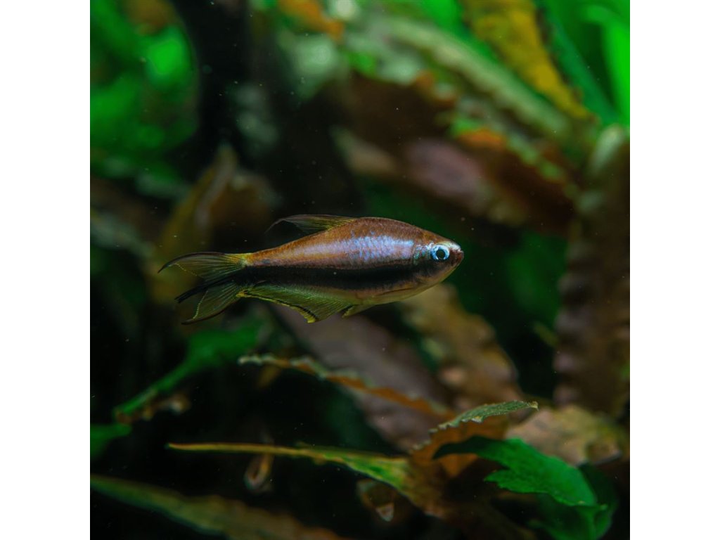 Čilá, společenská, nenáročná rybka a velmi žravá rybka, která si vytváří teritoria. Jejich zbarvení nejlépe vynikne pod WRGB osvětlením. Středem těla prochází černý pruh. Miluje dobře osázená akvária delší než 80 cm. V hejnu se nedrží. Samci si vytváří teritoria, která si zvlášť při tření hájí před ostatními samci. Agresivní ale nejsou, ryb jiných druhů si nevšímají. Ani hájení teritoria není tak silné jako např. u cichlid. V hejnu se nedrží, spíš v menších skupinkách. Patří mezi méně choulostivé druhy, přesto nádrž udržujeme v čistotě a bez zvýšené koncentrace dusíkatých látek.