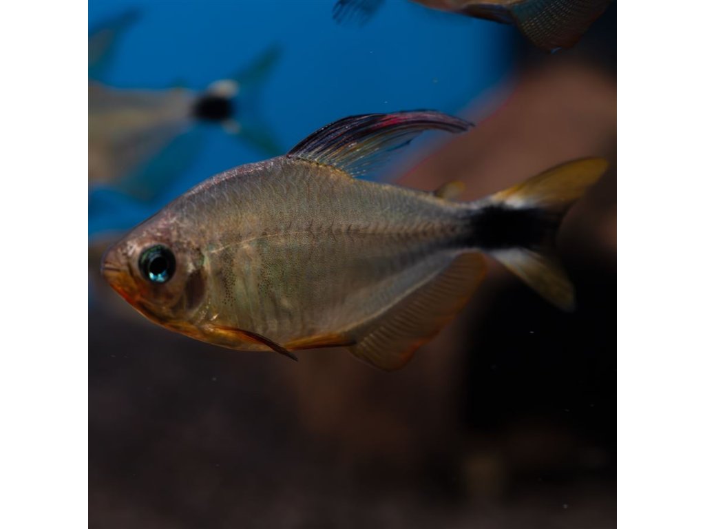 známá jako Raccoon Tetra, je elegantní a mírumilovná tetrovitá ryba pocházející z povodí řeky Aripuanã v Brazílii. 🐟 Je ceněna pro své jedinečné zbarvení – světle růžovo-zlaté tělo s tmavou skvrnou u báze ocasní ploutve a dvěma červenými humerálními skvrnami na každé straně. 🔴🔴 Dospělí samci mají prodlouženou hřbetní ploutev a výraznější oranžovo-červené zbarvení ploutví než samice.