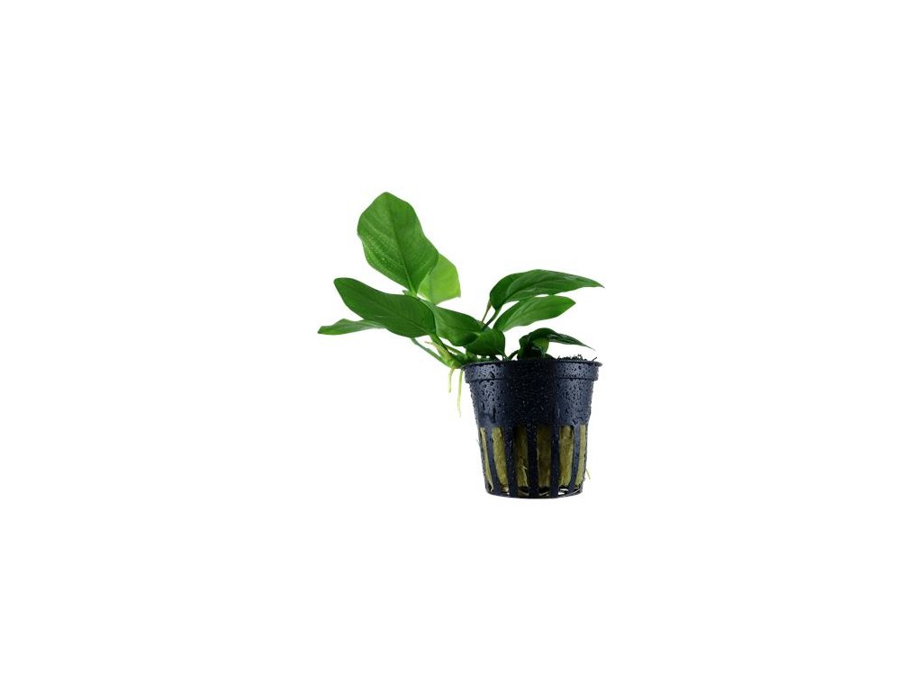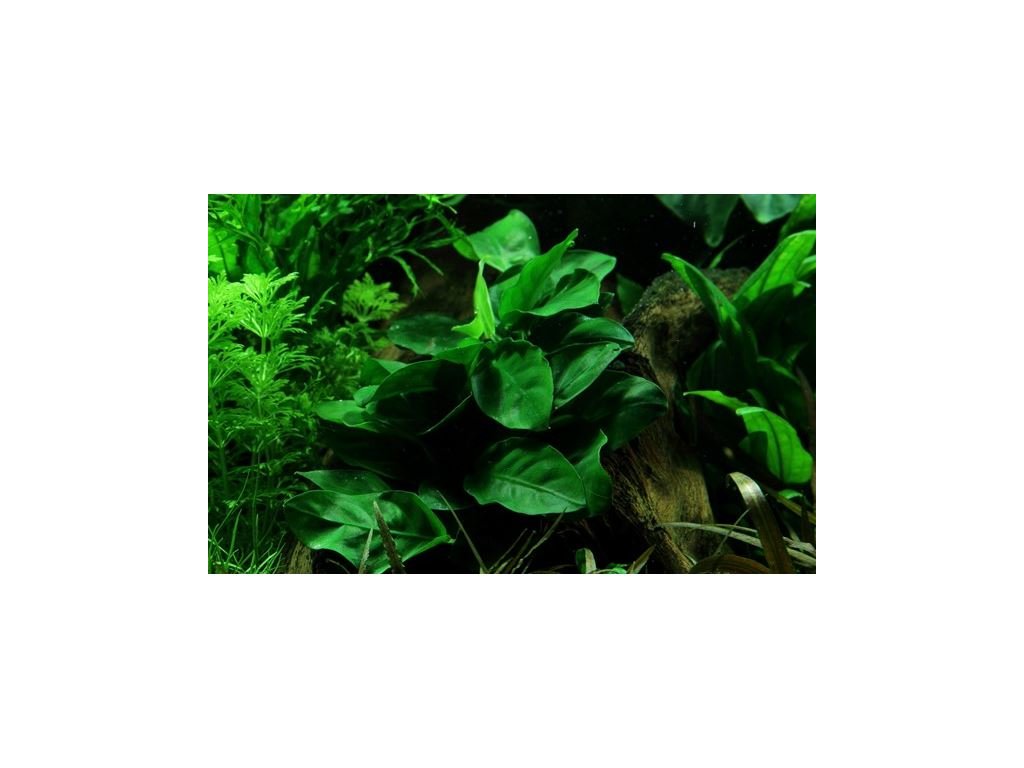 Anubias barteri var. nana je malá, atraktivní rostlina, které se daří ve všech podmínkách. Rostlinka pochází z Kamerunu a dosáhne výšky 5-10 cm. Hlavní stonek bude 10-15 cm dlouhý nebo více. Pomalu roste a listy přežívají několik let. Po nějaké době rostlina vytvoří velmi atraktivní trs listů.Žádaného růstu u této rostliny dosáhnete pokud rostlinu zasadíte popřípadě přivážete ke kořeni nebo kameni. Tuto rostlinku by jste nikdy neměli sázet do substrátu. Pokud by jste tomu tak udělali a zakryli hlavní stonek, tak by rostlina postupně strádala a uhynula.