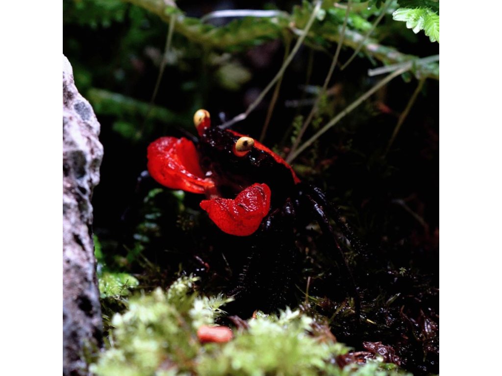 je malý, atraktivně zbarvený sladkovodní krab pocházející z jihovýchodní Asie. Tento druh je oblíbený mezi akvaristy a teraristy díky svému výraznému červenému zbarvení a aktivnímu chování. Dorůstá se velikosti 2-3 cm a je vhodný pro paludária s kombinací vody a souše. Je to společenský druh, doporučuje se chovat skupinu několika jedinců. Přestože není agresivní, může docházet k drobným potyčkám mezi samci. Jedná se o nenáročného a zajímavého živočicha, který je vhodný pro zkušenější chovatele.